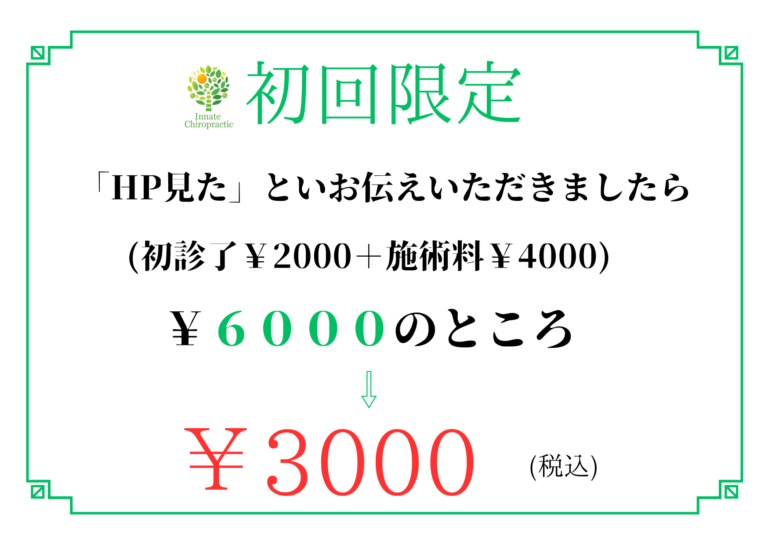 この初回割引というものは「まずは気軽にご相談頂く」という事と「カイロプラクティックがどのような施術なのか?そして整体院と違って当院しか行っていない治療法を知ってもらい安心してもらう」という目的があります。